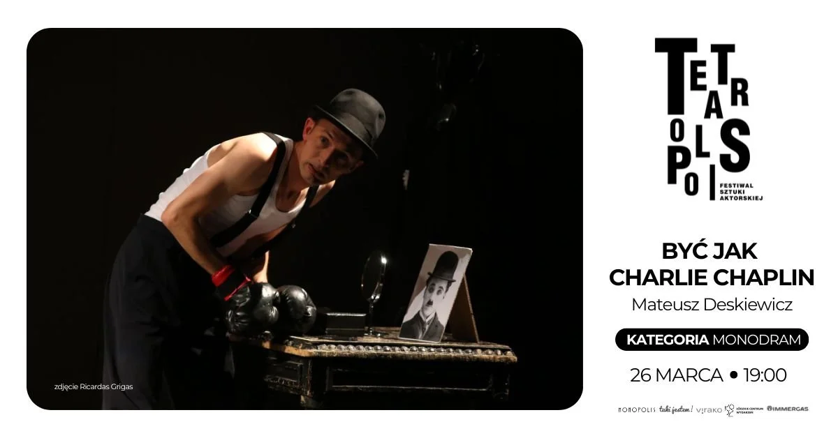 Spektakl to istny wulkan energii, w którym Mateusz Deskiewicz pokazuje pełen wachlarz swoich umiejętności: tańczy, śpiewa, wzrusza, rozśmiesza i prowokuje do refleksji. Najsłynniejszy komik czarno-białego filmu stał się ikoną popkultury już bardzo dawno temu. Jego znakiem rozpoznawczym były melonik, laseczka oraz charakterystyczny wąsik, choć do dziś nie wiemy, kim był z pochodzenia oraz gdzie urodził się ten genialny aktor, scenarzysta i reżyser.