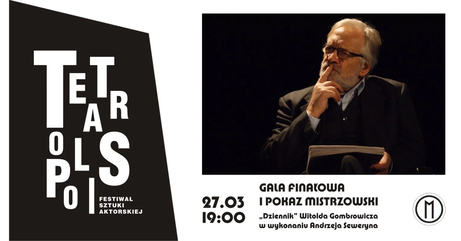 Ceremonia zamknięcia pierwszej edycji Festiwalu Sztuki Aktorskiej TEATROPOLIS nieprzypadkowo zbiega się z Międzynarodowym Dniem Teatru. Światowe święto Melpomeny Organizatorzy postanowili uczcić nagradzając wyjątkowych artystów teatralnych. Podczas uroczystości wręczone zostaną statuetki w dwóch kategoriach: Debiuty i Open. Uroczystą Galę zakończy pokaz mistrzowski w wykonaniu Andrzeja Seweryna. W przygotowanych fragmentach „Dziennika” Witolda Gombrowicza mowa będzie o Polsce, Europie i Francji, o kulturze, literaturze i krytykach.
